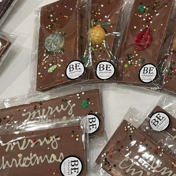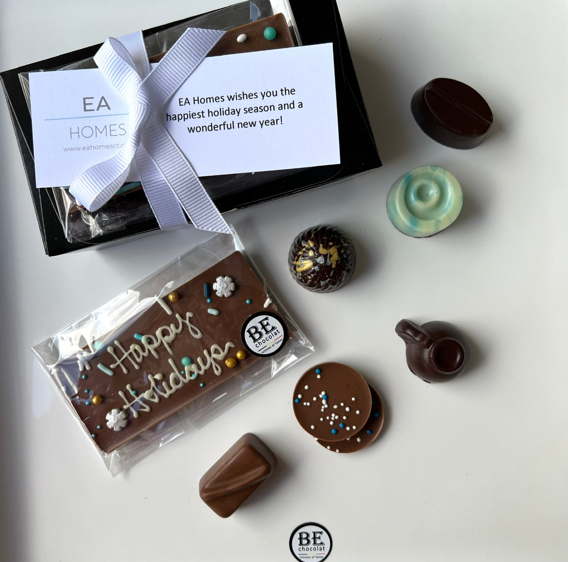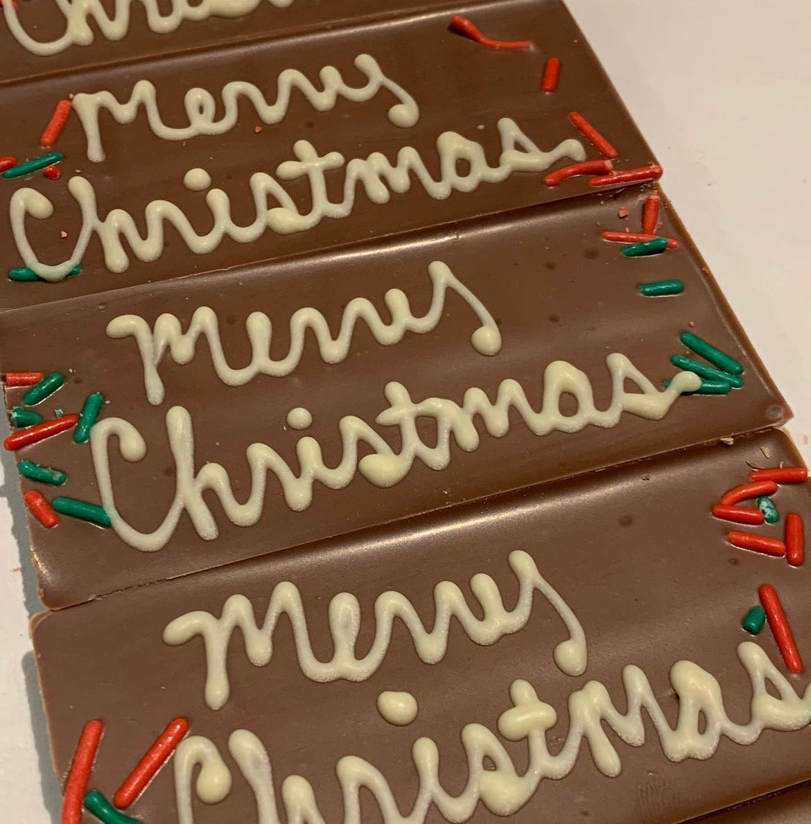 Our small holiday bars are available in dark and milk chocolate only. If you have a specific request look at our personalized bars.