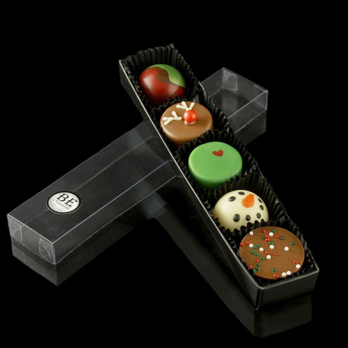 BE Joyful - A fun and joyful creation for this holiday season. A mix of Mint, Reindeer (Double Milk), Gingerbread, Mr. Grinch (Biscoff), Snowman (vanilla), and milk disc ornaments.