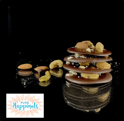 Belgian dark or milk chocolate with roasted nuts from Pure Happinuts.